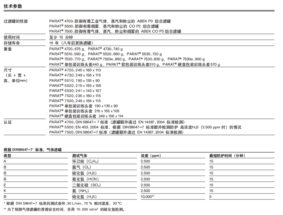 壳和经过测试的滤罐,佩戴 德尔格 PARAT 逃生头套可以抵御有毒的工业气体和烟雾、蒸汽和粉尘至少 15 分钟。